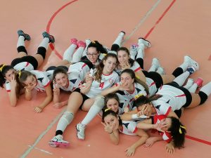 Terzo set, non c’è storia, le avversarie mollano e le nostre ragazze, ormai tutte ruotate in campo, procedono determinate punto dopo punto (sbagliando poco o niente) e si aggiudicano anche il terzo set 25-9, quello della vittoria!