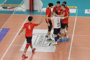 Successione set: 26-24 in 29′, 18-25 in 25′, 25-21 in 27′, 20-25 in 27′, 11-15 in 16′.