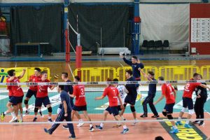 Fermo Marranini, a casa con la bronchite, fin dal primo set, coach Prosperi schiera Giannini come unico palleggiatore, Molesti e Pieri al centro, Mirdita e Riccioni bande, Falleri opposto e Landi libero.