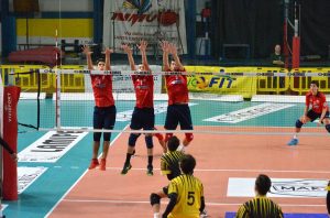 Brescia naturalmente non ci sta e sale di giri con tutte le sue bocche da fuoco già a partire dal fondamentale del servizio: specialmente Milan, dopo un primo parziale anonimo, diventa una spina nel fianco per i santacrocesi che finiscono per perdere contatto con i locali nella fase centrale del secondo set (16-14, 21-14). Tiberti e soci impattano sull’1-1 chiudendo per 25-17 il parziale e mantengono l’inerzia invariata anche nel terzo set, scappando subito via (8-5, 16-13) senza mai dare alla Kemas Lamipel di un positivissimo Colli la reale possibilità di rientrare nel punteggio. Totire sprona i suoi ma alla fine il tabellino recita 25-20 e 2-1 in favore dei padroni di casa.