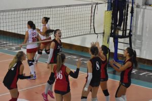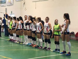 lenamento e capitan Coltelli tenuta a riposo precauzionale per fastidi ad un ginocchio. Coach Giannoni schiera Menichetti in palleggio, in staffetta con l’altro regista Campigli. Sartori opposto Fiorentini e Bracci in banda, quest’ultima ha poi lasciato spazio a Bertini. Al centro Barbagli e Masoni, libero Bachi. Spazio anche per le under 16 Moretti e Branzi rispettivamente centrale e libero.