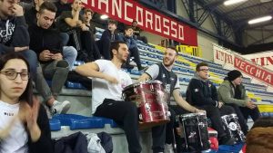 Il PalaParenti e’ una bolgia, ci sono tanti appassionati, genitori, dirigenti e allenatori del settore giovanile, lo staff della prima squadra al completo con Mister Totire ed il direttore sportivo Pagliai, ci sono i loro ragazzi a tifare senza sosta per rendere l’atmosfera ancora piu’ incandescente se ce ne fosse bisogno. Ci sono i ragazzi della Fossa, con Fajo che per una sera lascia lo scettro del comando del tifo agli scatenati Pippo Ciulli e Leo Colli che guidano con i tamburi gli altri compagni e tutta la “torcida” biancorossa nel sostenere i Lupi nel match dell’anno.