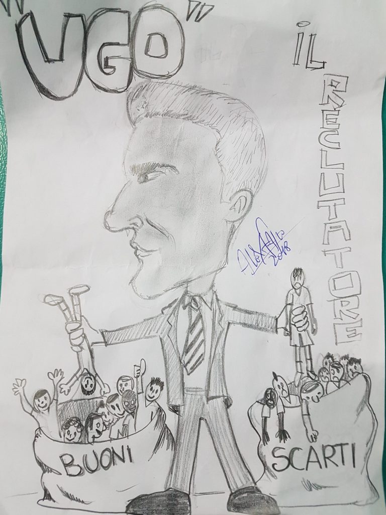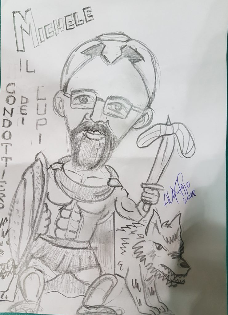 Ieri sera, al termine del secondo allenamento in programma, il tecnico Totire è stato omaggiato dal noto supertifoso Alessandro Fagiolini (al secolo Fajo) con una sua caricatura, regalata dall’immaginifico artista santacrocese.